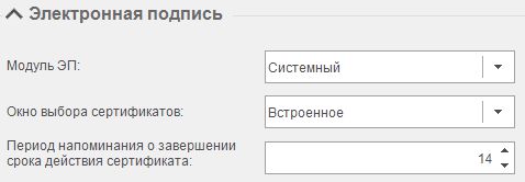 Модуль ЭЦП - задает способ обработки ЭЦП. Возможные значения:
