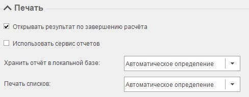 Печать - параметры, определяющие производительность рабочего места (клиентской части) при обработке файлов отчетов.