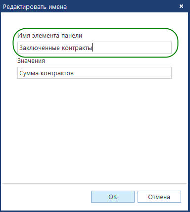 Чтобы задать название заголовка элемента дашборда перейдите в меню элемента дашборда
