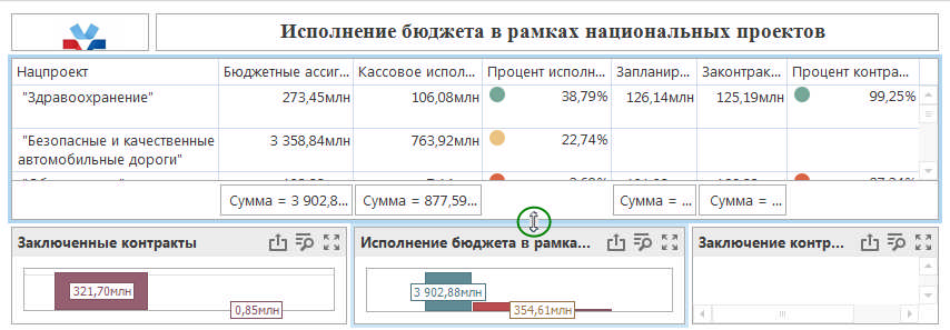 Вы можете изменять макет дашборда меняя размер элементов дашборда, перетягивая его границы мышью.