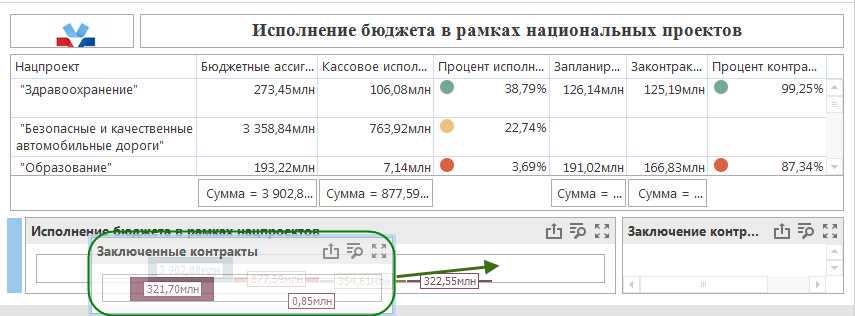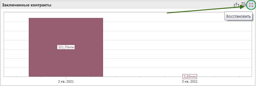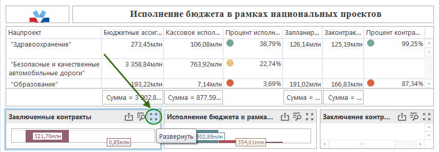 Для более детального анализа данных можно увеличить элемент дашборда развернув его на весь дашборд по кнопке Развернуть: