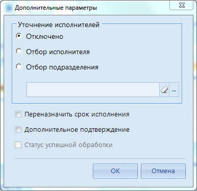 - Дополнительное подтверждение – включение дополнительного подтверждения исполнителем действий по переводу документов на следующий этап для исключения случайностей.