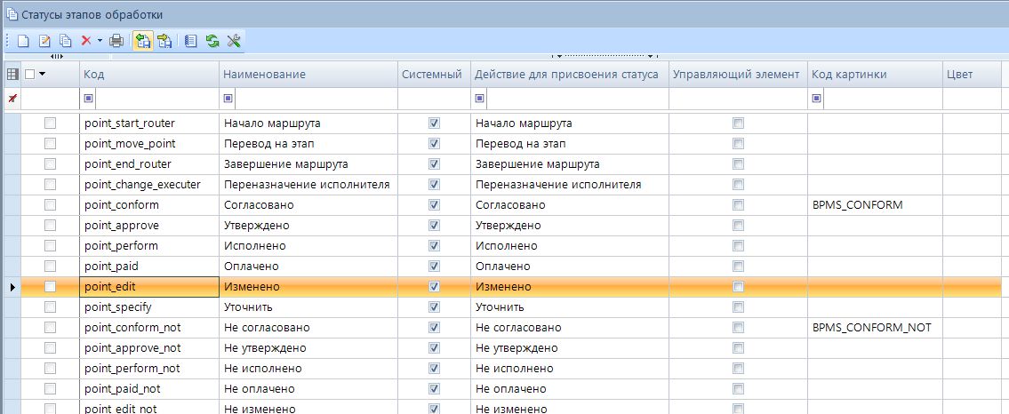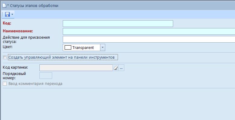 НАВИГАТОР => СПРАВОЧНИКИ => БИЗНЕС-ПРОЦЕССЫ => ВСПОМОГАТЕЛЬНЫЕ МОДУЛИ => СТАТУСЫ ЭТАПОВ ОБРАБОТКИ