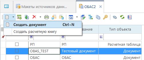 Для работ по настройке документа необходимо перейти в список Макеты источников данных (подробнее в разделе Макет источников данных), выбрать МИД и двойным кликом на выбранной строке открыть окно объектов МИД (документов и расчетных книг).