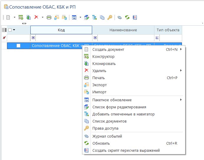 Также данные действия можно выполнить с помощью контекстного меню списка объектов ИД.