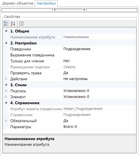 - Наименование атрибута (только для чтения) — передаётся наименование атрибута из структуры документа.