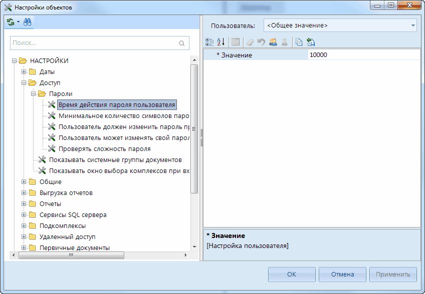 Пароли - группа настроек, определяющая возможность и периодичность изменения своего пароля пользователем. Данные настройки не учитываются для системных администраторов.