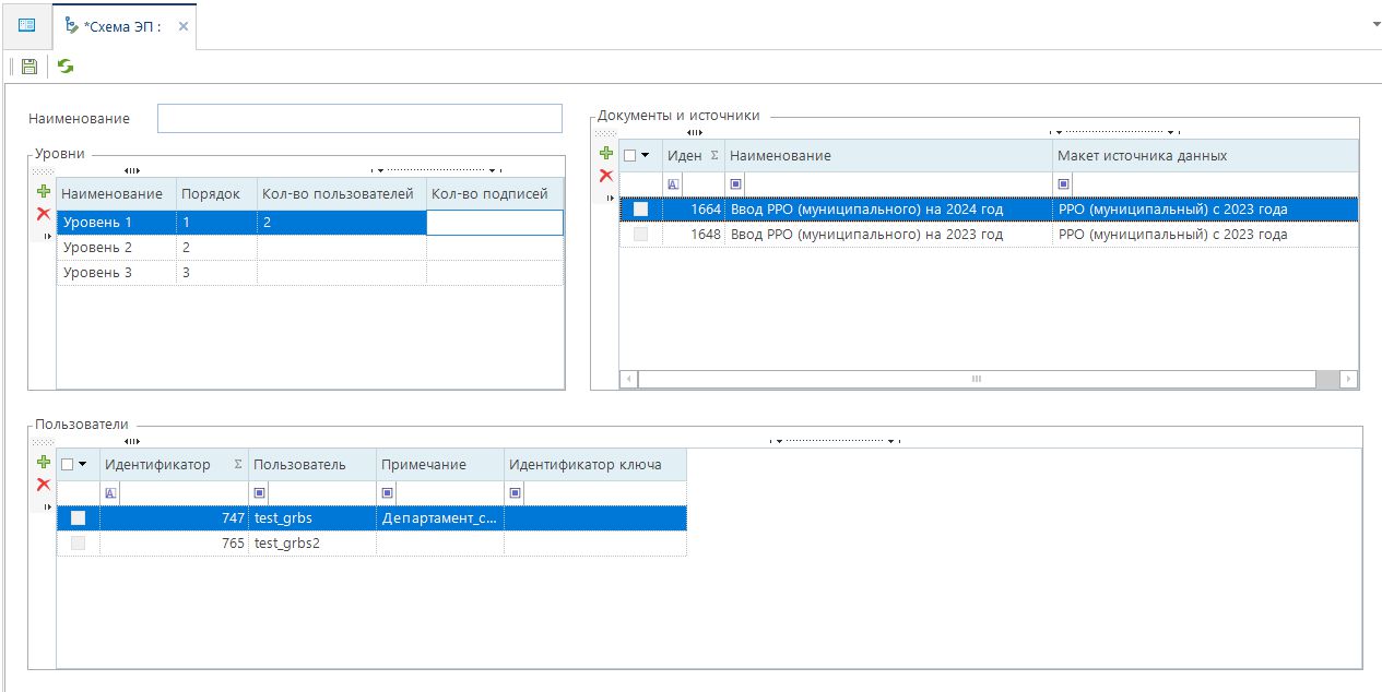 В верхней части окна необходимо ввести наименование Схемы ЭП.