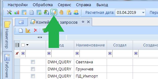 Обновить - обновление списка контейнеров запросов.