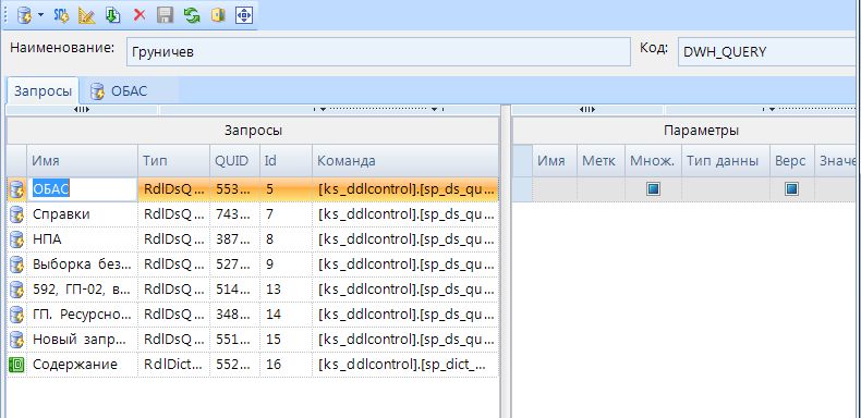 Сохранить (Ctrl+S) - сохранение изменений в контейнере запросов.