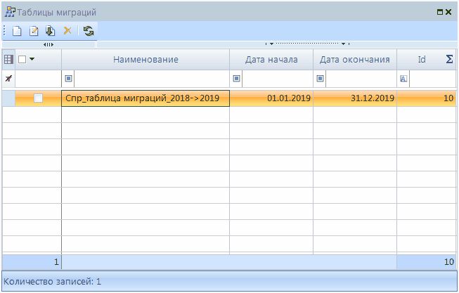 Панель инструментов данного режима Таблицы миграции формы позволяет: