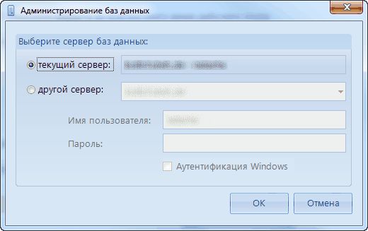 При входе в данный режим запрашивается имя SQL сервера, с базами данных которого надо поработать, логин и пароль администратора сервера, после чего отображается список баз данных указанного SQL сервера.