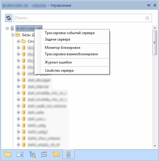 Данный режим дублирует некоторые функциональные возможности утилиты SQL сервера Manager Studio по управлению базами данных и позволяет выполнять основные действия над базами данных через интерфейс программы.