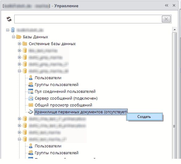 Создание хранилища первичных документов:- В контекстном меню соответствующей настройки выбираем Создать.