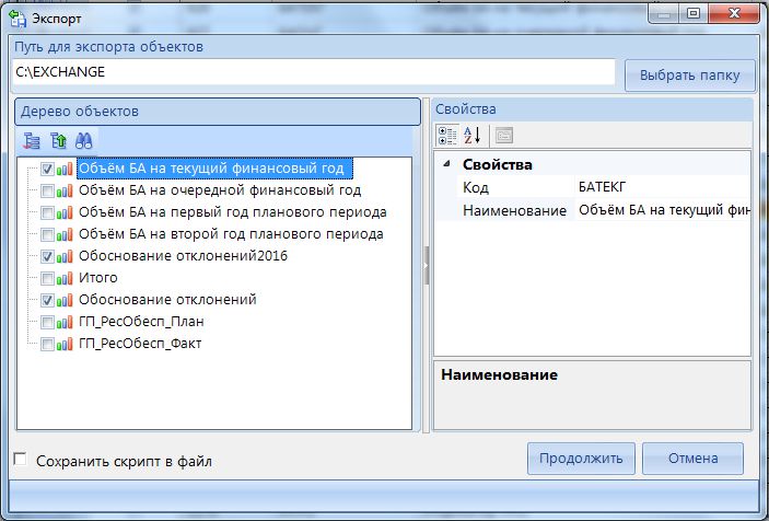 В открывшемся окне необходимо выбрать папку выгрузки и отметить показатели, которые необходимо выгрузить: