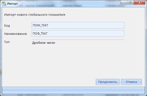 В открывшемся окне необходимо указать путь к импортируемому файлу и выбрать его. Далее в окне Импорт можно задать Код и Наименование импортироемому показателю.