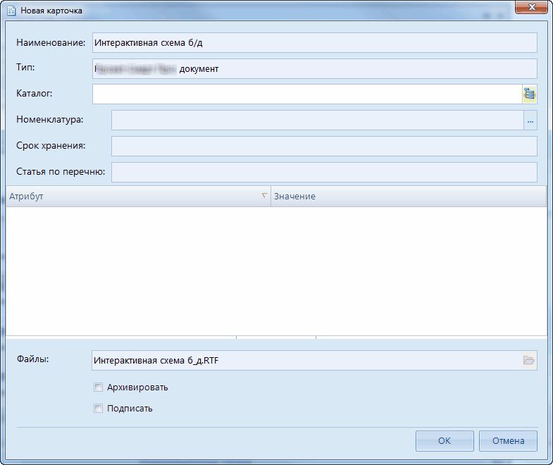 Каталог, а также заполнить доступные поля. Также можно включить опции Архивировать и Подписать.