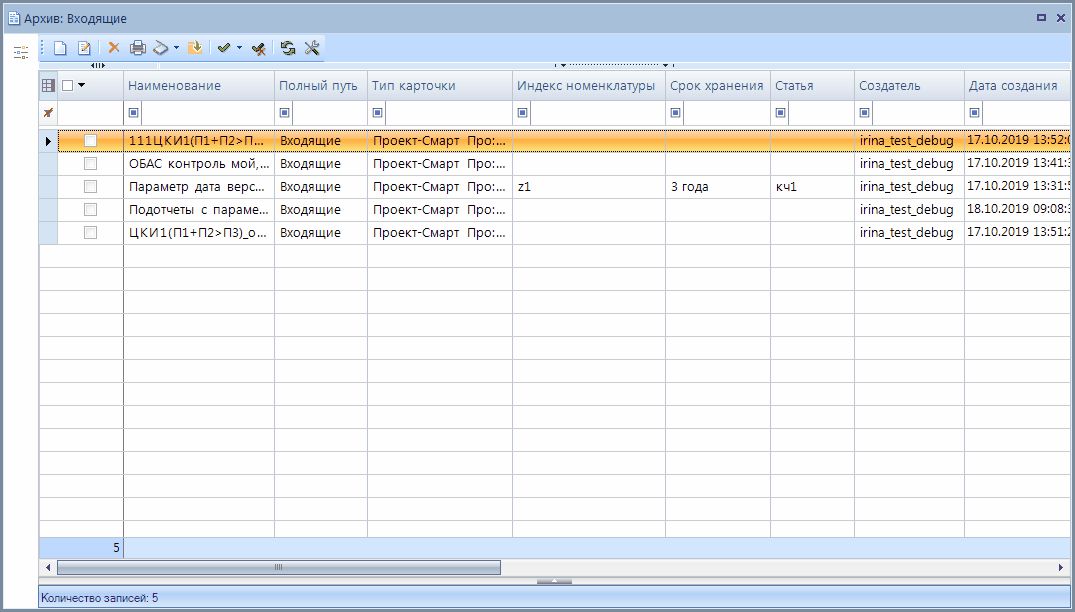 В правой части окна отобразится список карточек выгруженных в данную папку электронного архива.
