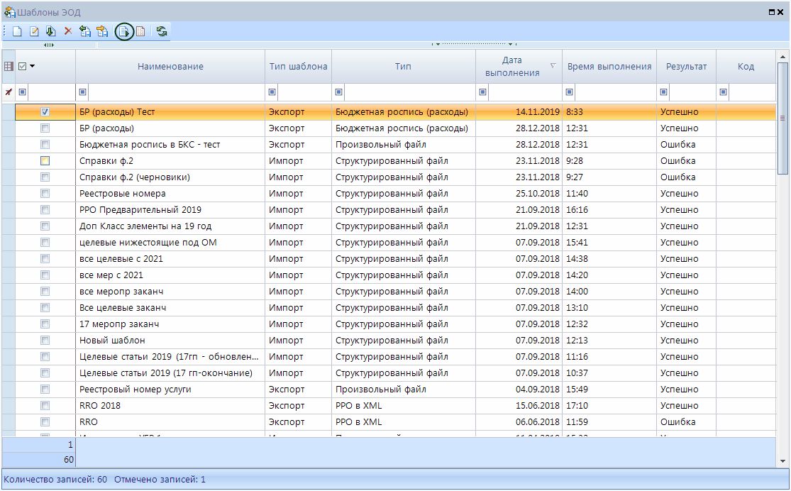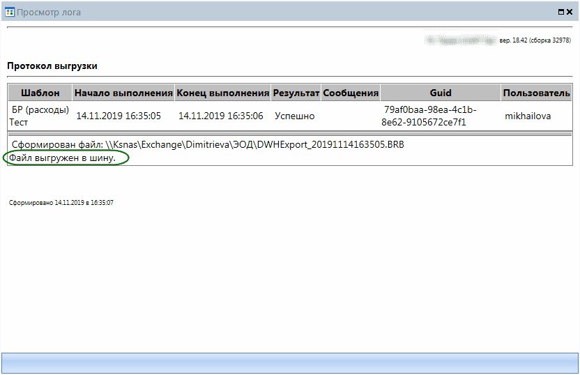 Запустить панели инструментов списка шаблонов ЭОД. После успешного запуска отобразится протокол выгрузки, где будет отображено сообщение, что файл выгружен в шину.