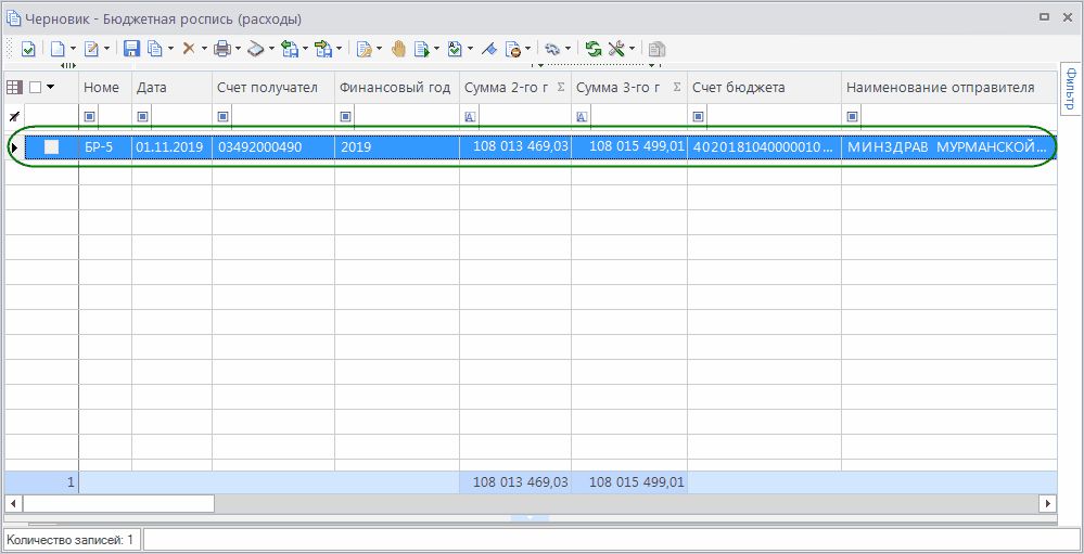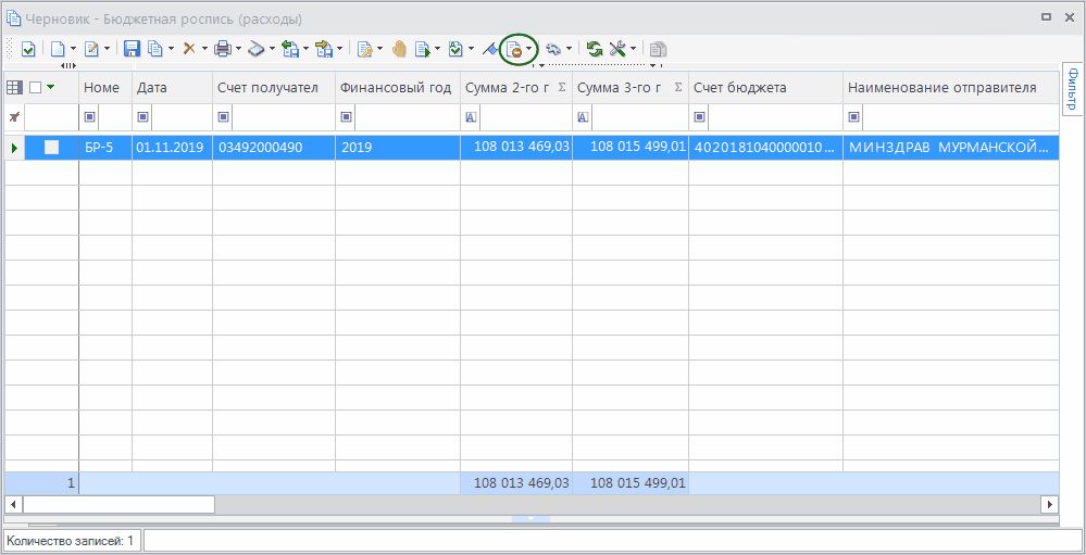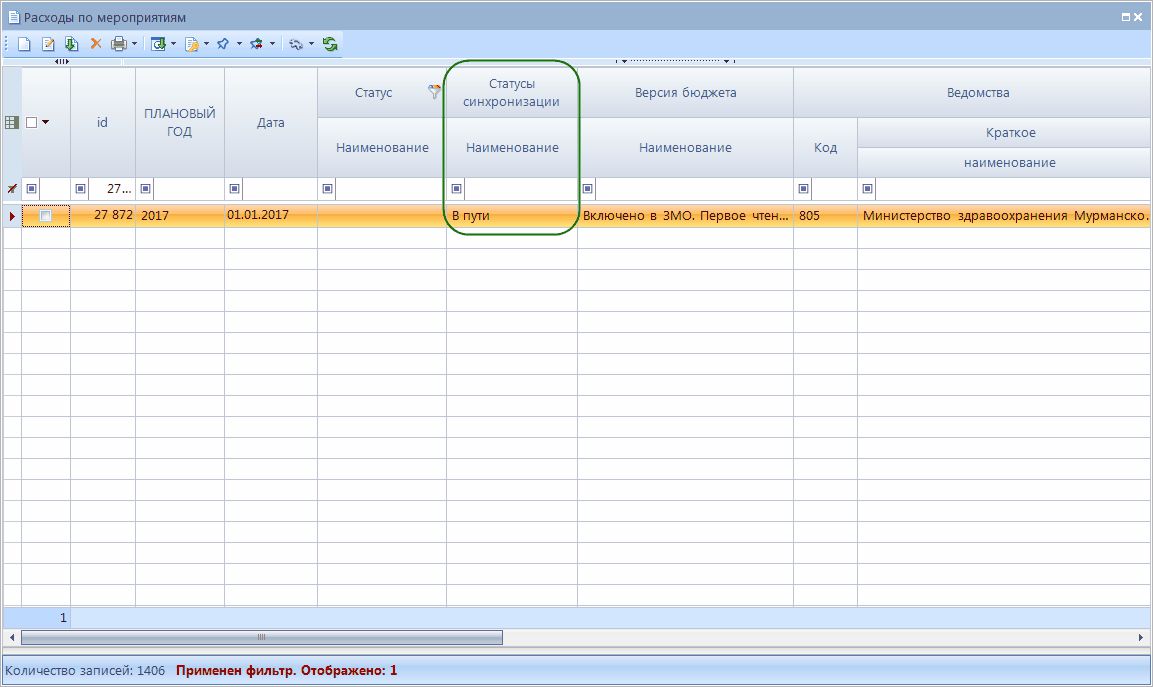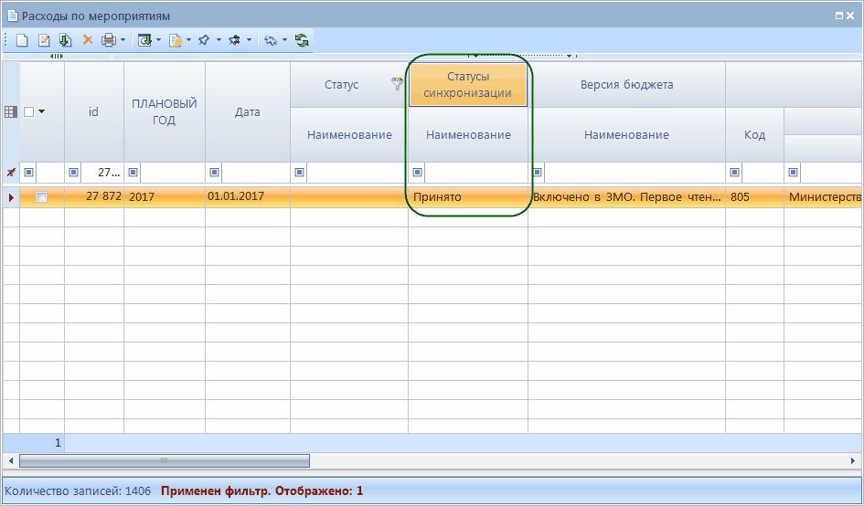 - После того как в базу ПК Бюджет-Смарт синхронизируется документ, в базе ПК Проект-Смарт Про данному документу будет присвоен статус Выгружено.