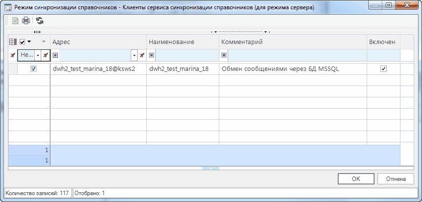 В пункте Клиенты сервиса синхронизации справочников из списка выбираем заранее настроенный канал синхронизации и нажимаем ОК.