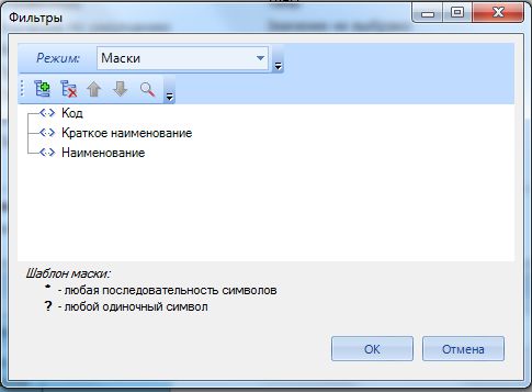 Маски - ограничение списка элементов справочника осуществляется путём настраивания масок.