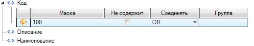 - Просмотр выражения - для просмотра выражения установленной маски. Например, Макет_несколько справочников.Код like '100'.