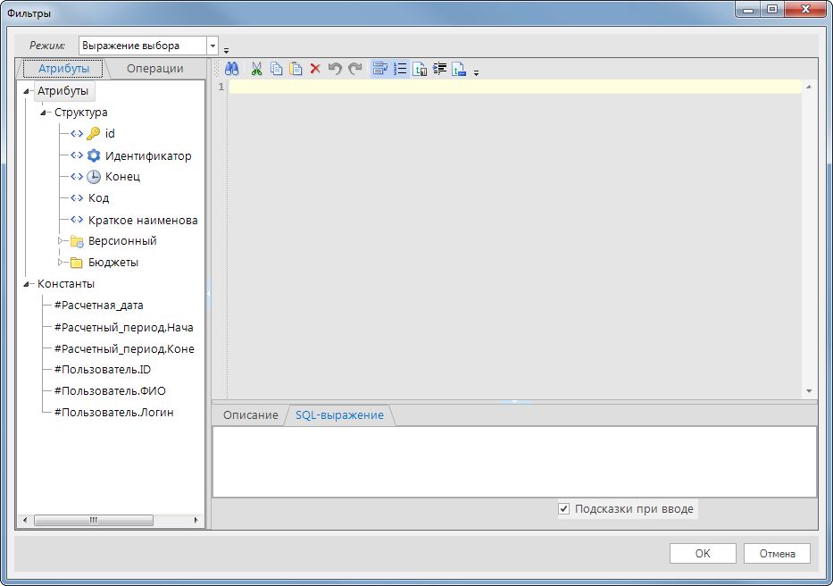 Выражение выбора - ограничение списка элементов справочника осуществляется с помощью вычисляемого выражения.