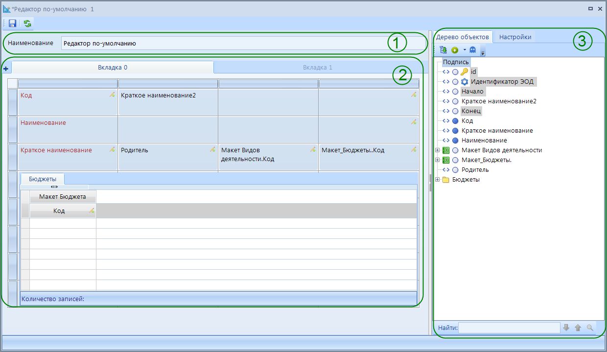 (2) Область построения – отображается набор атрибутов, добавленных на вкладки формы редактирования.
