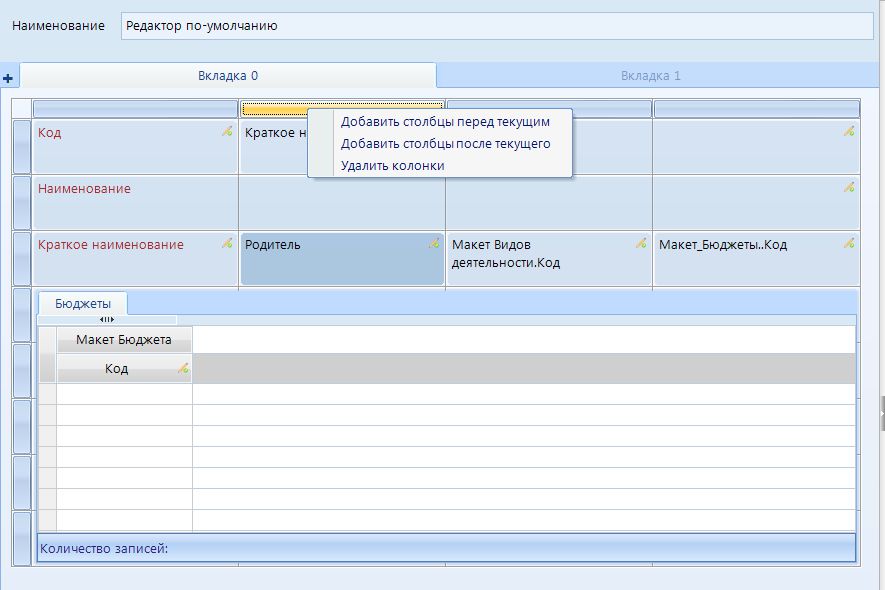 Удалить - удаление выделенной формы редактирования.