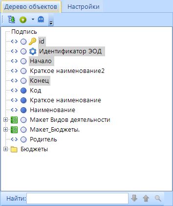 (3) Дерево объектов\Настройки – на вкладке Дерево объектов отображается набор атрибутов логической структуры документа.