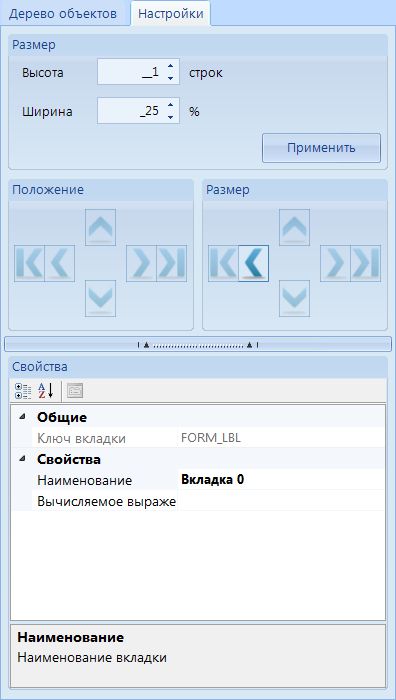 Свойства объекта Вкладка содержат настройки: