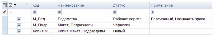 В колонке Статус списка макетов справочников отображается состояние макета: