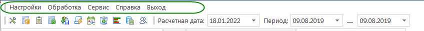 Главное меню содержит набор функций и режимов программного комплекса, обеспечивая доступ к режимам: