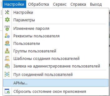 Доступ к настройкам программного комплекса осуществляется через пункт Настройки главного меню или главной панели инструментов: