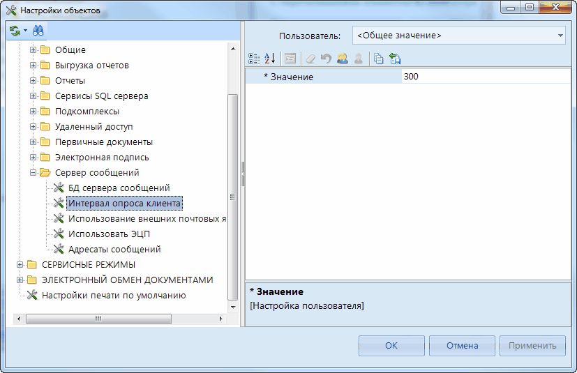 Группа настроек для сервиса обмена сообщениями и электронной почтой в ПО.