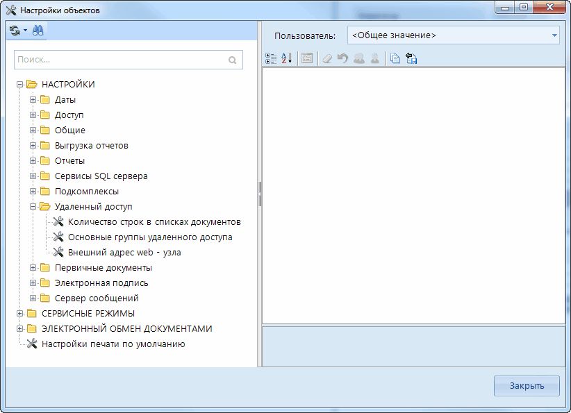- Количество строк в списках документов - настройка задает количество строк отображаемых на странице списков документов в приложении при работе через браузер.