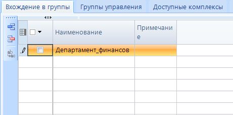 - Вхождение в группы - указывается группа (-ы), в которую входит пользователь и права которой он наследует. Группы добавляются по кнопке A New stroka Добавить строку с последующим выбором из "справочника" групп. Сами группы создаются в меню "Настройки - Группы пользователей" и в меню "Настройки - Администратор групп".