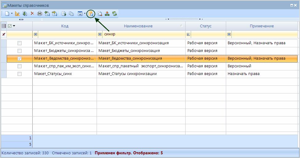 Для запуска настроенного шаблона синхронизации НСИ необходимо открыть список макетов справочников и нажать кнопку Запустить синхронизацию НСИ.