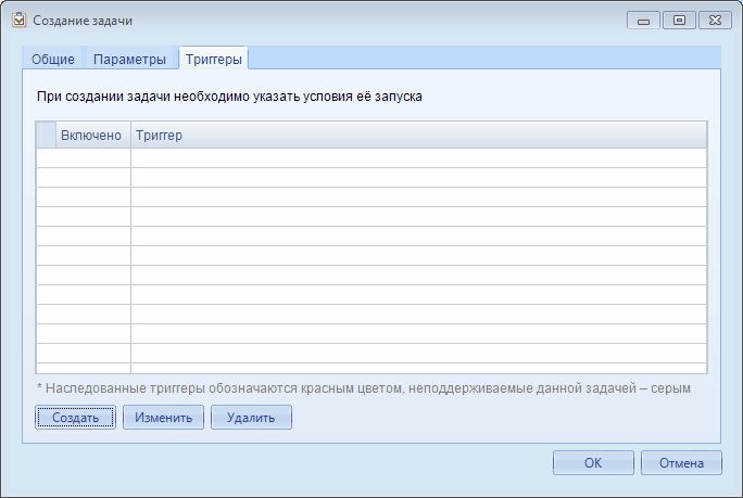 Вкладка Триггеры позволяет создать и изменить условия выполнения задачи.
