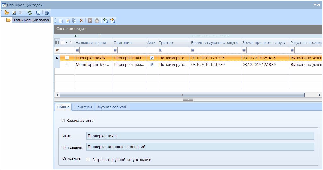 Разрешить ручной запуск– при включении данной настройки настроенная задача планировщика будет доступна для ручного запуска помощью кнопки Запустить панели инструментов.