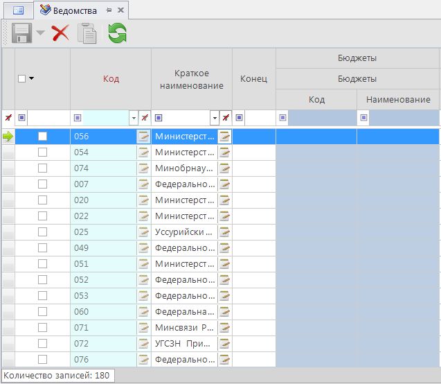 Добавление новой записи справочника осуществляется путем ввода атрибутов элемента в пустую строку в конце списка элементов справочника (сортировка данных справочника осуществляется автоматически при сохранении значения).